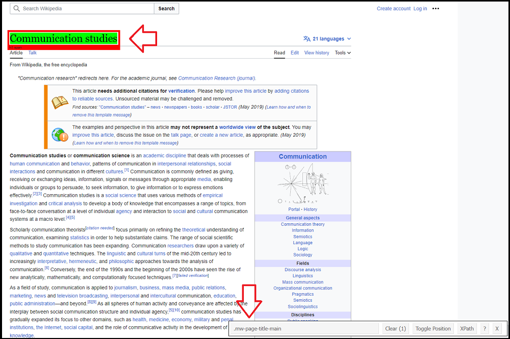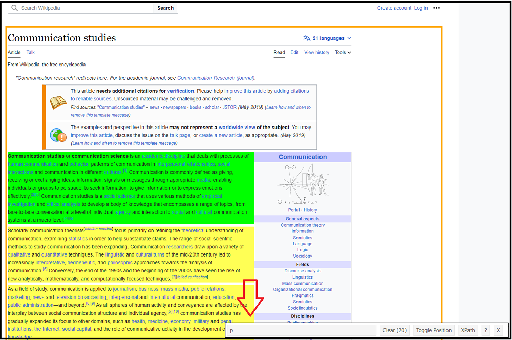 Let’s again take the Wikipedia page on “Communication studies” as an example: https://en.wikipedia.org/wiki/Communication_studies